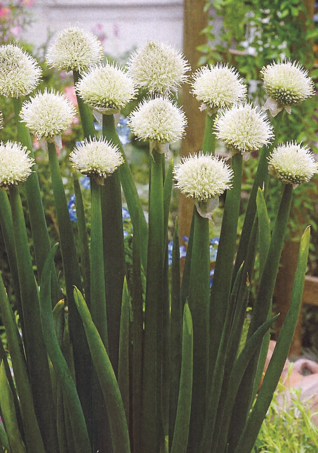 Grove bieslook bloeit met witte bloemen. De prei-achtige stengels zijn heerlijk om te eten. Prei en de St Jansui horen ook bij deze groep van stengeluien. De bloemen trekken veel insecten aan en ook in de sierborder misstaat deze plant niet. In een zakje zitten ongeveer 100 zaden.