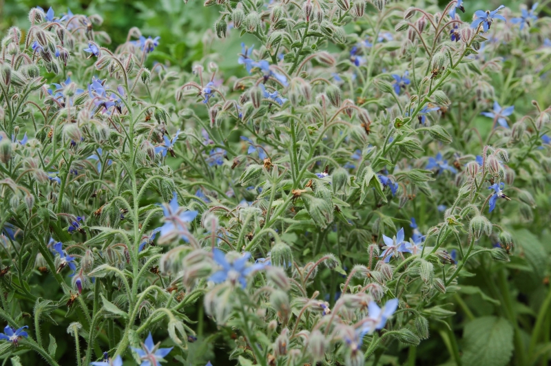 Borago officinalis of bernagie is een kruid dat in 1597 door de kruidendeskundige John Gerard is beschreven als een kruid dat altijd vreugde brengt. Zowel bloemen, bladeren als zaad kunnen worden gebruikt. Jong blad smaakt naar komkommer. De bloemen zijn eetbaar en vormen een mooi accent in salades. Zaaien bij 20 graden in potten en vanaf half Mei ter plaatse. Kan zich ook uitzaaien maar niet hinderlijk. In een zakje zitten circa 50 zaden. De witbloeiende vorm is ook leverbaar.