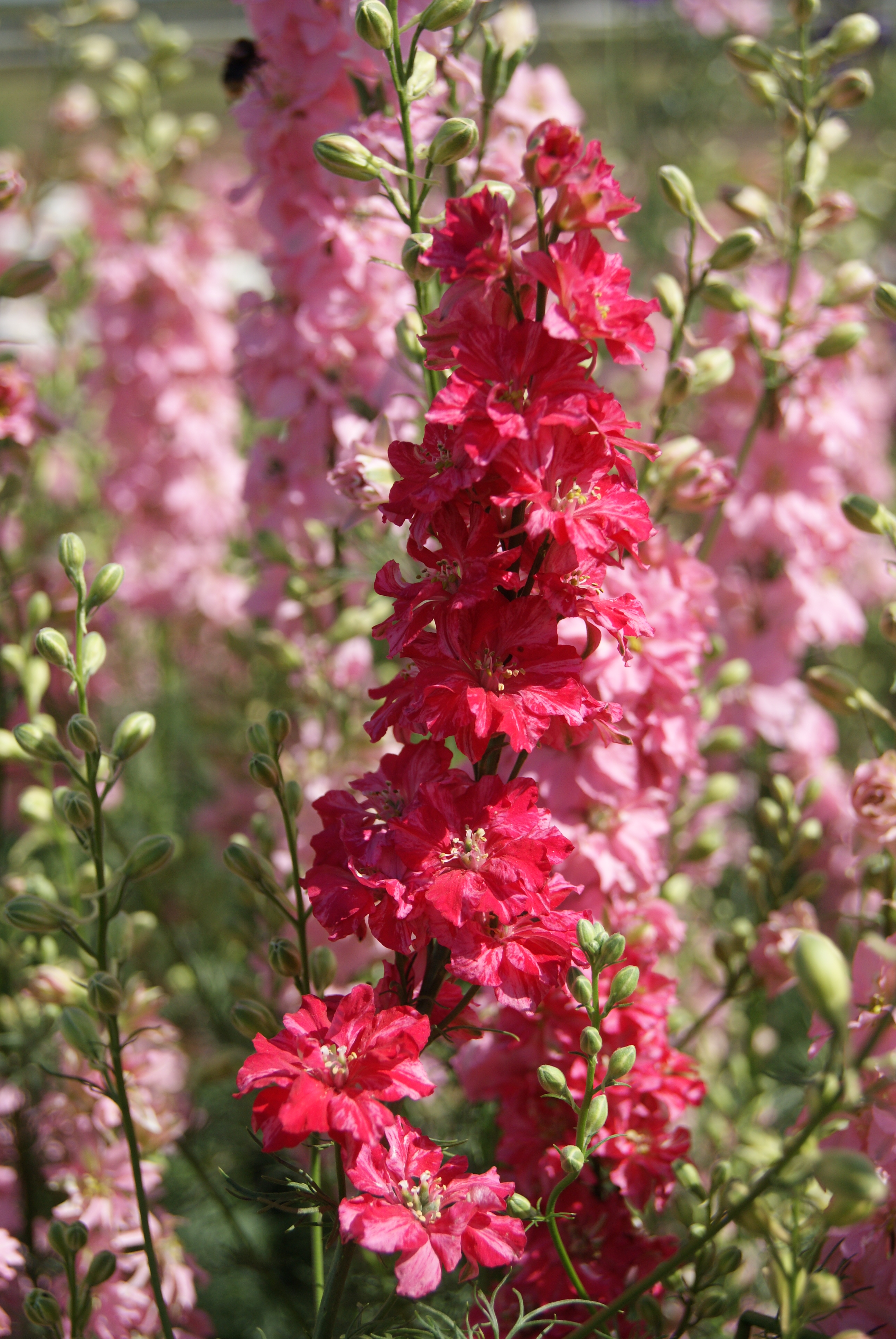 Rood bloeiende eenjarige ridderspoor kun je ook al vroeg zaaien. Met wat koude kiemen ze beter. Mooie weefplant. Bloeit in principe de gehele zomer op een zonnige standplaats. Is ook een prima snijbloem. Kan zich uitzaaien maar eigenlijk nooit hinderlijk. Het is natuurlijk ook leuk om er zelf zaden van te winnen. Deze ridderspoor wordt circa 100 cm hoog. In een zakje zitten ruim 200 zaden.