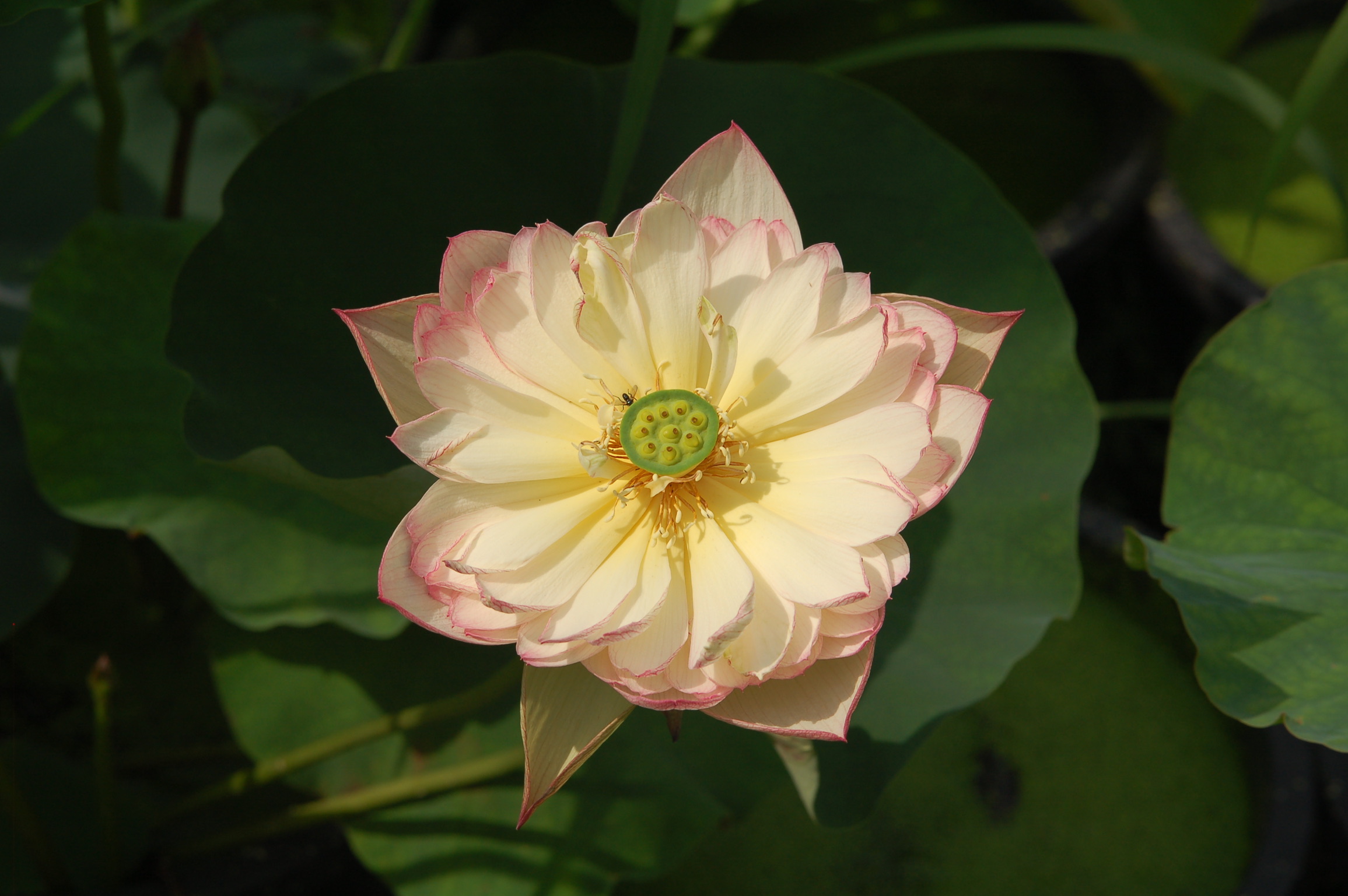 Uiteraard moeten de zaden rijp zijn. Rijpe zaden zijn bijna zwart van kleur en glad van huid. De zaadhuid is een harde schil die moet worden beschadigd zonder de zaadlobben binnenin te beschadigen. Je kunt er met een goede schaar een puntje afknippen maar met behulp van een goede vijl zijn er ook prima resultaten te behalen. Denk om de vingers. Ik spreek uit ervaring. Een eenvoudiger methode is het boren van een klein gaatje in de harde huid. U boort precies zover tot de witte zaadlobben zichtbaar zijn. De huid moet worden beschadigd om water bij zaadlobben te kunnen laten komen. Na het opzwellen dat 3 a 4 dagen in beslag neemt duurt het 5 tot 7 dagen voordat er wortels en blad te voorschijn komen. Jia Sixie adviseerde om de opzwellende zaden te verpakken in vette klei om drijven van de zaden te voorkomen. Met het groeien van de bladeren stijgt ook het waterniveau in de potten. Nelumbo zaden kiemen het beste bij temperaturen tussen 20 en 25 graden en dan ook nog eens het liefst in direct zonlicht. Klei en leemgrond zijn verreweg de beste grondsoorten voor de Nelumbo om in te groeien.