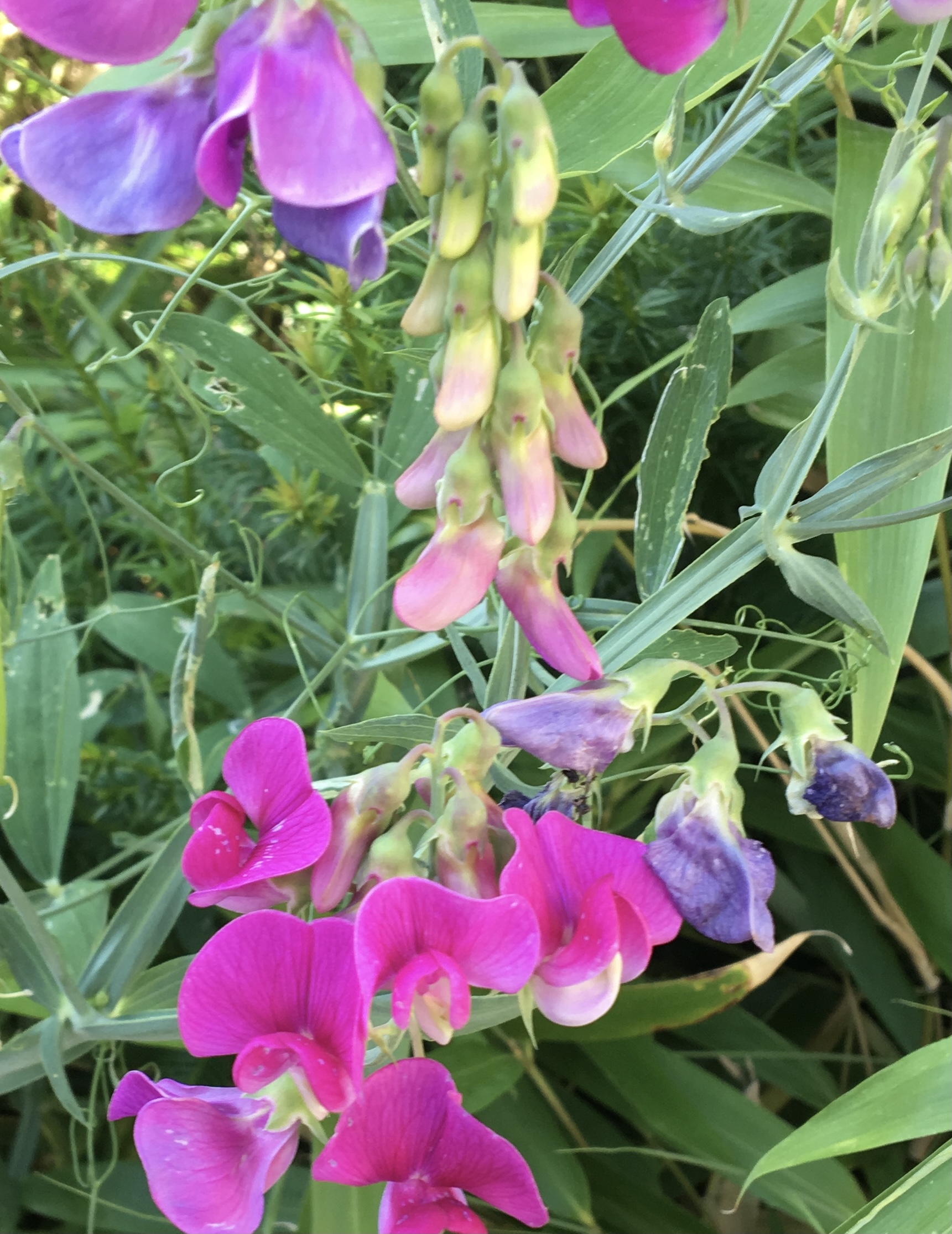 Lathyrus latifolius Red Pearl is net als zijn witte en lichtroze broertjes een sterk klimmende vaste plant die ruim 2 meter hoog kan worden. Red Pearl is een rozerode vorm De Nederlandse naam is brede lathyrus en de oorsprong van deze soort ligt in Midden en Zuid-Europa. Zorg voor voldoende steun, waaraan de plant zich met zijn ranken kan vastklemmen. Planten die het naar hun zin hebben kunnen vele jaren keer op keer voor een prachtige fontein van bloemen zorgen. De hoofdbloei valt in juli-augustus maar ervoor en erna is er zeker ook het nodige te genieten. Na de bloei worden er mooie zaaddozen gevormd. Uit een forse verticaal groeiende ondergrondse vlezige wortel ontspruiten jaarlijks de nieuwe scheuten. Deze ondergrondse wortel kan meer dan polsdik worden bij oudere planten. Vanuit deze wortels kan de plant ook vermeerderd worden. Deze variëteit levert minder goede snijbloemen. Dit komt doordat de mooie diep rozerode kleur op de vaas al snel verandert in een vale blauwgroene kleur. Graag een zonnige standplaats. Groeit op alle grondsoorten. Links op de foto is Red Pearl en rechts is Pink Pearl. In een zakje zitten circa 40 zaden.