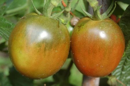De oorsprong van Black Plum ligt in Rusland. Dit is een stevige varieteit die buiten en in de koude kas prima groeit en volop vruchten produceerd. De planten zijn, zelfs in deze natte zomer, buiten nog steeds kerngezond. De kleur van deze tomaat is mahoney met langs de bovenrand donkergroene strepen naar beneden. Als de tomaat nog groen is kun je dit bijzonder goed zien. Het is een prima tomaat om zo te eten en erg geschikt voor een lekkere soep. Wij bieden u 10 zaden voor €2,50. Koel en droog bewaard zijn de zaden van tomaten zeer lang te bewaren. Tot wel 10 jaar lang.