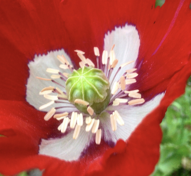 Enkelbloemige winterharde eenjarige papaver. Prachtig rood met wit. Hoogte circa 90 cm. In een zakje zitten circa 400 zaden.