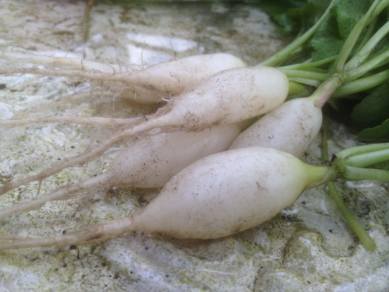 Raphanus Sativus ook wel "ijskegel" of in het engels White icicle is het meest bekende langwerpige witte ras met een mild pittige smaak. Zaaien van februari t/m augustus, zorg voor voldoende vocht. In de zomer kan mulchen helpen tegen uitdrogen van de grond. In een zakje zitten circa 250 zaden.