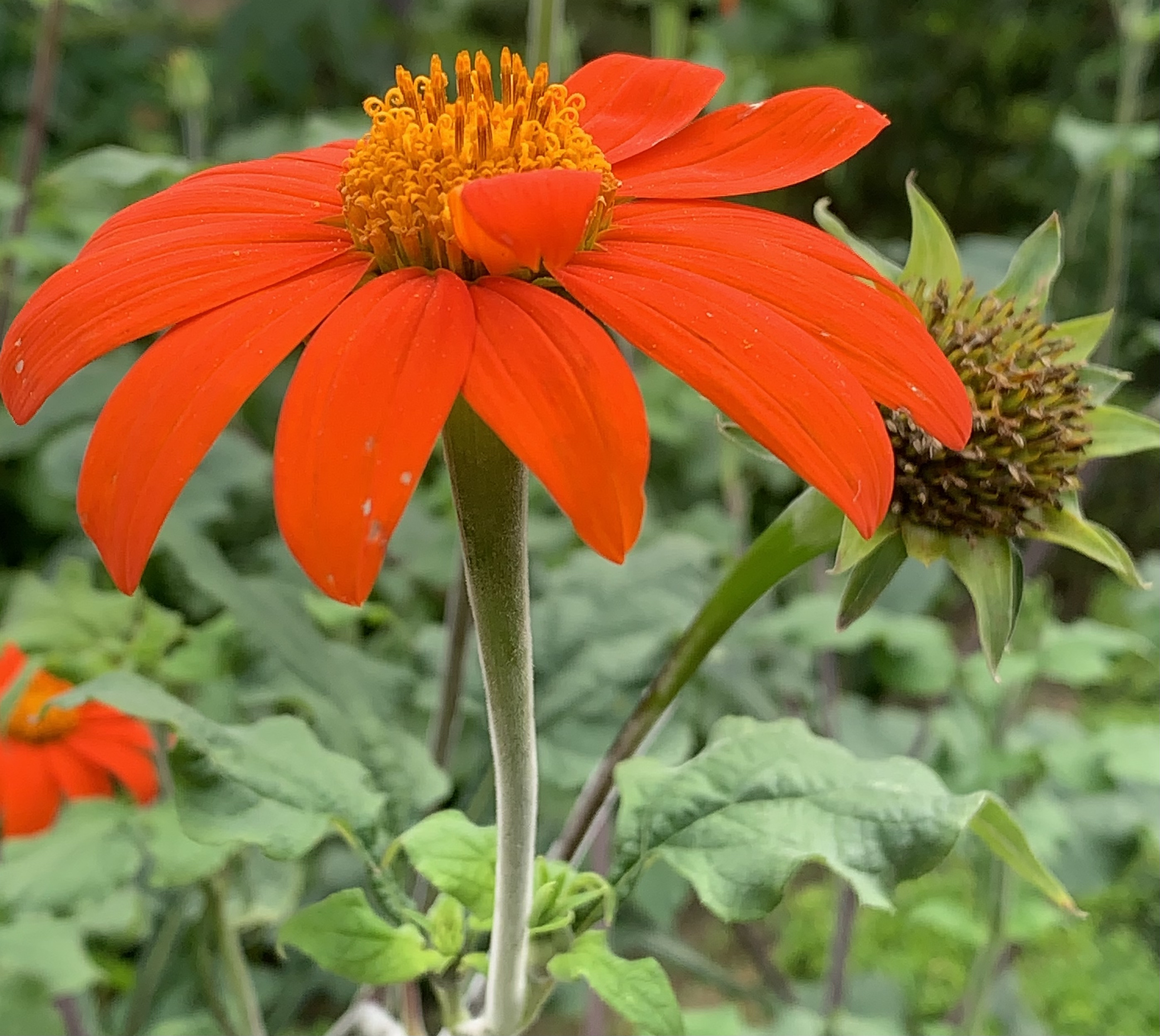 Mexicaanse zonnebloem heeft rood-oranje bloemen. Kan wel 150 cm hoog worden. Eenjarig. Tithonia heeft graag een zonnige plek. Hoe kan het ook anders als je roots in Mexico liggen. Vanaf maart binnen voorzaaien in potjes. Vanaf mei kan ook ter plaatse worden gezaaid. Tithonia krijgt veel bezoek van bijen en vlinders. In een zakje zitten ruim 100 zaden.