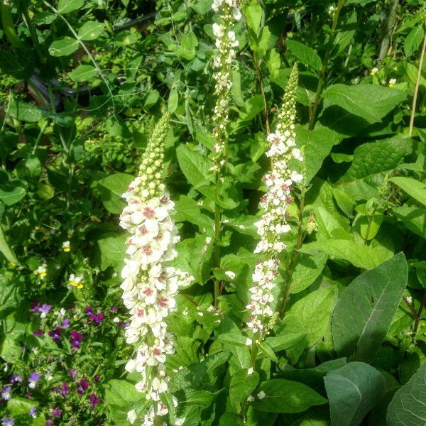 Dit is de witte variant van de zwarte toorts. Geeft een prachtig verticaal silhouet in de tuin. Zaaien juli augustus of in het voorjaar. Zonnige plek. Kan tegen droogte. Kan meer dan 200 cm hoog worden