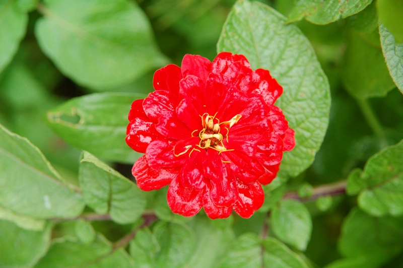 Zinnia elegans Scarlet Flame is een hoog opgaande cultivar. Circa 90 cm. De helderode bloemen zijn prima snijbloemen. Binnen voorzaaien, verspenen en oppotten voor extra voege bloei. Vanaf mei t/m juni kan ook ter plekke worden gezaaid. Zonnige standplaats. In een zakje zitten circa 300 zaden.